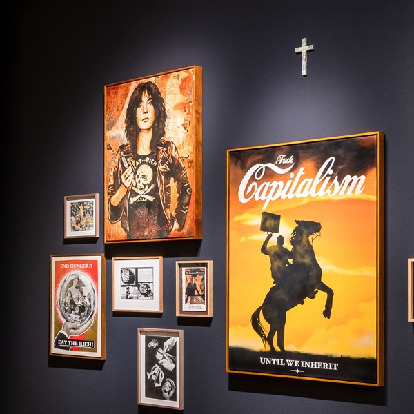 Mit seinem radikalen DIY-Spirit schuf Punk eine neue visuelle Sprache. Fans gestalteten Jacken, Plakate und Räume selbst. Künstler wie Jamie Reid, der mit seinen Typografie-Collagen das Bild des britischen Punk prägte, und Winston Smith, der das Erscheinungsbild der Dead Kennedys formte, wurden zu zentralen Stimmen dieser Ästhetik. Ihre Bildwelt wirkt bis heute nach und beeinflusst Designer und Künstler weltweit. Gleichzeitig hat der Ursprungsgedanke des Punk oft an Schärfe verloren. COPY + PASTE setzt hier an. Die Ausstellung entsteht im direkten Austausch mit den Schöpfern dieser Bewegung und jenen, die sie weitertragen: Shepard Fairey, INVADER und NoNÅME. Fairey übersetzt seit Jahrzehnten den DIY-Gedanken in politische Bildsprache. INVADER bringt mit tausenden Mosaiken im öffentlichen Raum Punk in die digitale Ära. NoNÅME steht für eine neue, reflektierte Generation, die den Geist des Punk in avantgardistische Kunst verwandelt. Diese Zusammenstellung zeigt: Punk ist lebendig. Als Haltung, als Antrieb, als Vision für eine Welt im Wandel.