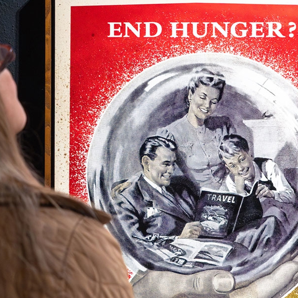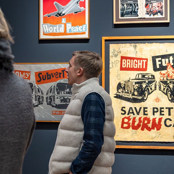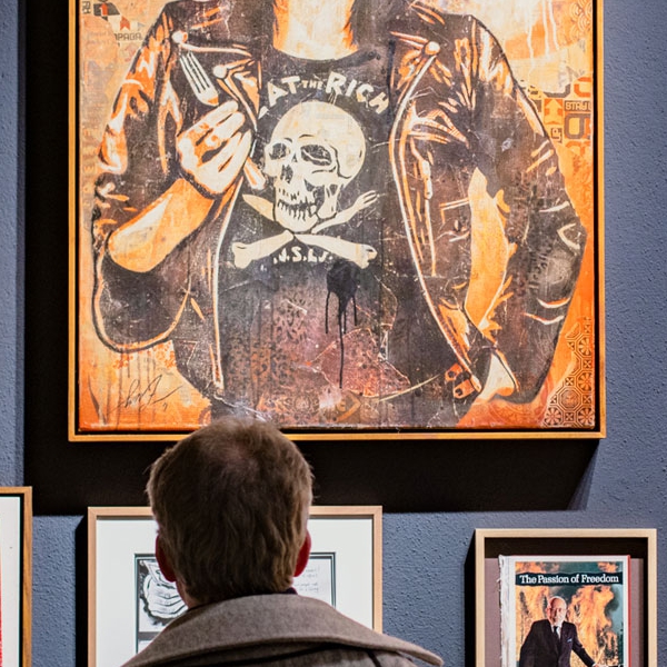 Mit seinem radikalen DIY-Spirit schuf Punk eine neue visuelle Sprache. Fans gestalteten Jacken, Plakate und Räume selbst. Künstler wie Jamie Reid, der mit seinen Typografie-Collagen das Bild des britischen Punk prägte, und Winston Smith, der das Erscheinungsbild der Dead Kennedys formte, wurden zu zentralen Stimmen dieser Ästhetik. Ihre Bildwelt wirkt bis heute nach und beeinflusst Designer und Künstler weltweit. Gleichzeitig hat der Ursprungsgedanke des Punk oft an Schärfe verloren. COPY + PASTE setzt hier an. Die Ausstellung entsteht im direkten Austausch mit den Schöpfern dieser Bewegung und jenen, die sie weitertragen: Shepard Fairey, INVADER und NoNÅME. Fairey übersetzt seit Jahrzehnten den DIY-Gedanken in politische Bildsprache. INVADER bringt mit tausenden Mosaiken im öffentlichen Raum Punk in die digitale Ära. NoNÅME steht für eine neue, reflektierte Generation, die den Geist des Punk in avantgardistische Kunst verwandelt. Diese Zusammenstellung zeigt: Punk ist lebendig. Als Haltung, als Antrieb, als Vision für eine Welt im Wandel.